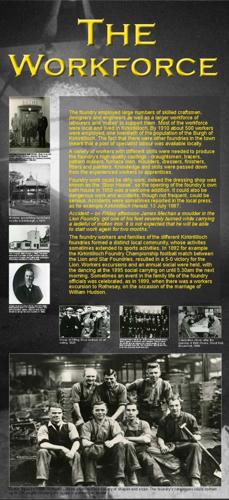 The foundry employed large numbers of skilled craftsmen, designers and engineers as well as a larger workforce of labourers and 'mates' to support them. Most of the workforce were local and lived in Kirkintilloch. By 1910 about 500 workers were employed, one twentieth of the population of the Burgh of Kirkintilloch. The fact that there were other foundries in the town meant that a pool of specialist labour was available locally. |