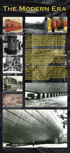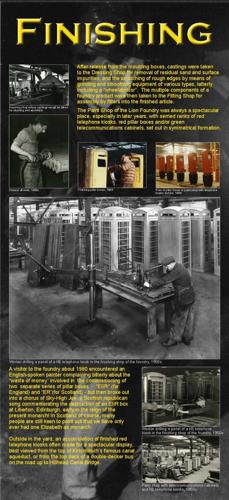 The post-war years were a time of evolution in the output of the foundry. Gone were the spectacular building front panels and most of the ornamental work, but in its place was a range of utilitarian products, including GPO telecommunication cabinets and pillar boxes, a variety of engineering castings and the distinctive new K8 type of red telephone kiosk. |