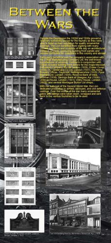 Despite the Depression, the 1920s and 1930s proved a relatively successful period for the foundry as they were able to build on their reputation for quality ornamental castings. The Lion benefited from working with many notable architects and sculptors of the day on architectural ironwork projects, producing building front panels and window surrounds for customers in this country and abroad. |